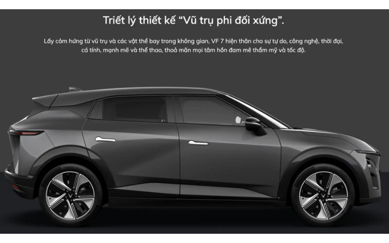 Nằm trong phân khúc SUV cỡ trung, VF 7 sở hữu kiểu dáng tiên phong, đột phá với không gian nội thất tập trung tối đa vào trải nghiệm lái. nhấn ấn tượng chính là phần mui xe vuốt thấp mang đậm chất thể thao, kết hợp cùng những đường nét táo bạo ở đuôi xe. Cụm đèn LED đồ họa hình cánh chim vút bay không chỉ tạo vẻ phóng khoáng mà còn là dấu ấn nhận diện không thể nhầm lẫn.