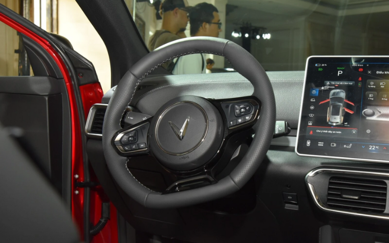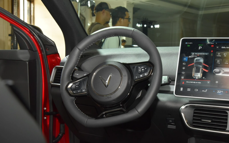 Vô lăng 3 chấu cắt đáy thể thao mang lại cảm giác lái phấn khích. Xe còn trang bị màn hình HUD (Head-up Display) trên kính lái (ngoại trừ bản VF8 S/Eco tinh giản) giúp người lái dễ dàng quan sát thông số.