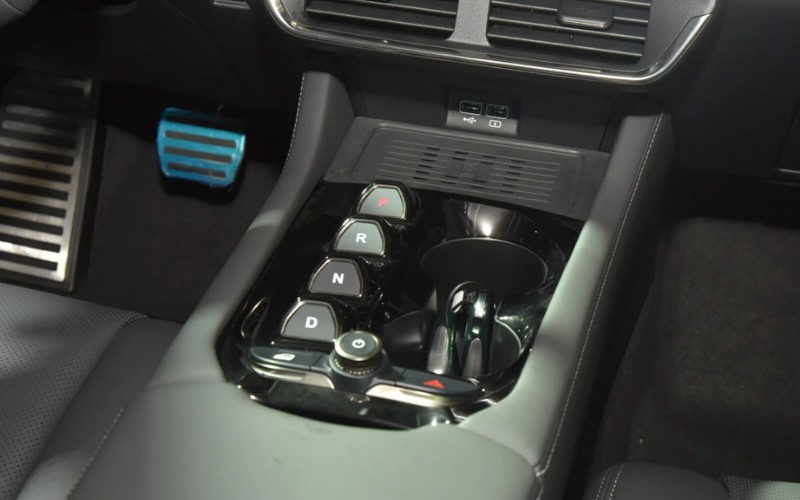 Cần số dạng nút bấm hiện đại, bệ tỳ tay kích thước lớn có thể tận dụng làm bàn làm việc. Hệ thống đèn viền nội thất sang trọng tăng thêm cảm hứng cho người ngồi.